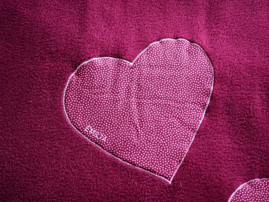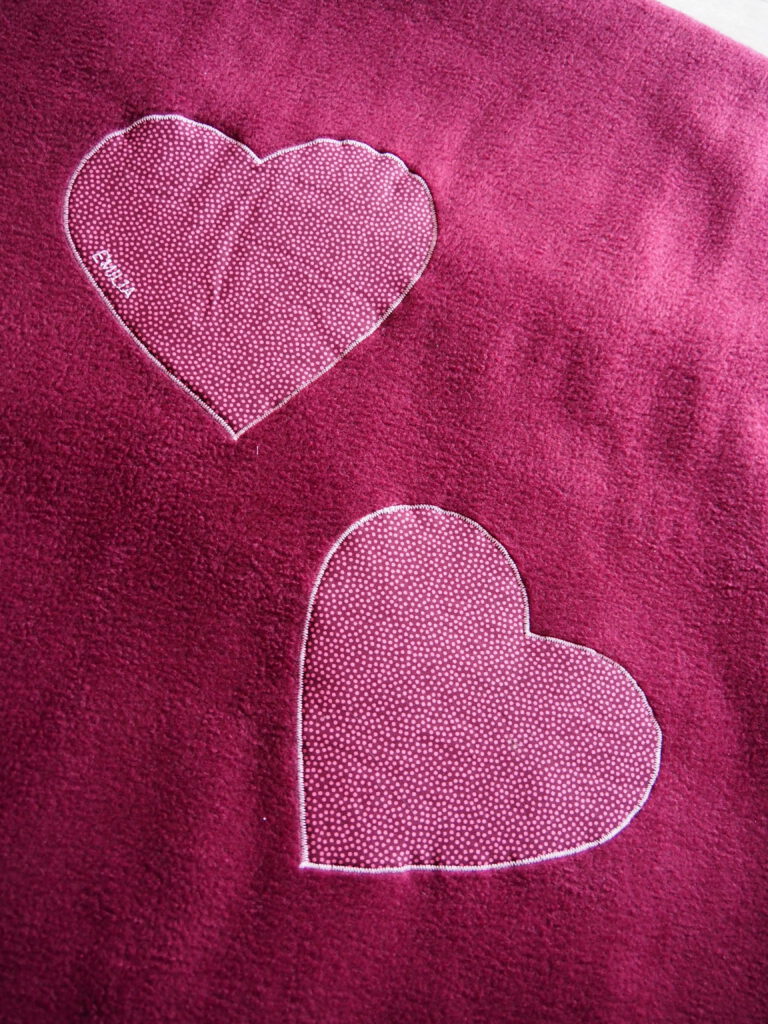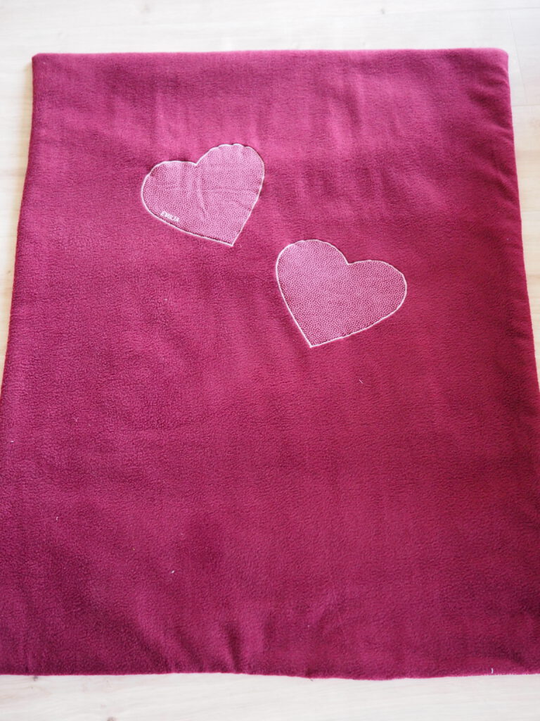Die Decke hat die Maße 0,75 m x 1,00 m, ist mit einem Vlies gefüttert und die Rückseite ist aus Fleece, so hat sie eine schöne Dicke und kann problemlos auf den Boden gelegt werden.