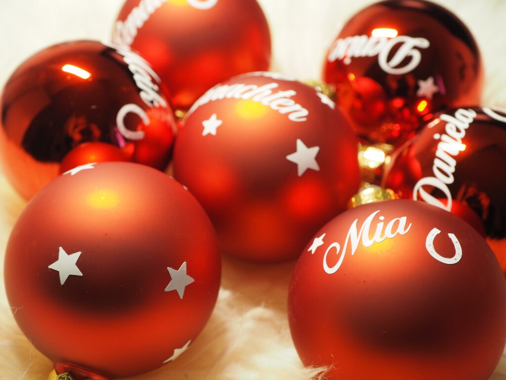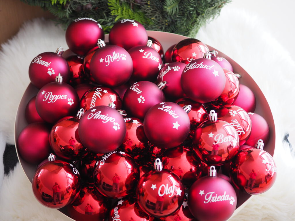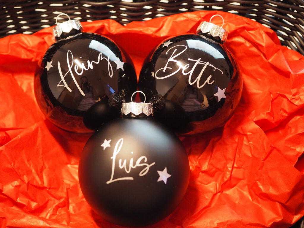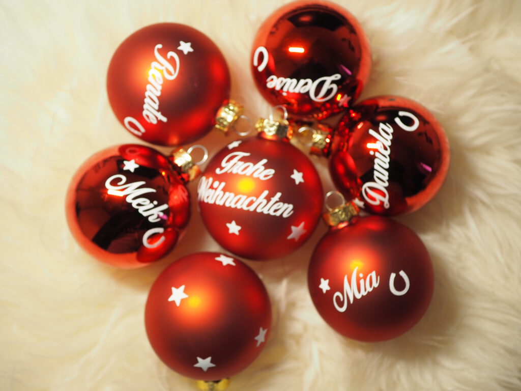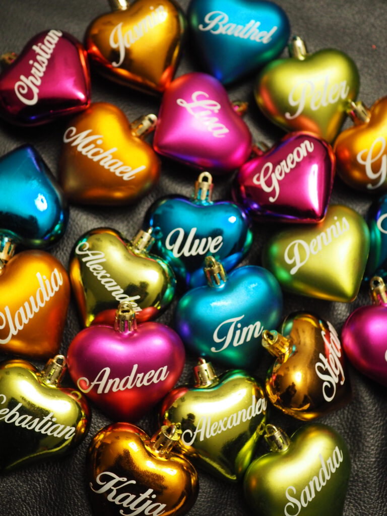 Dafür aber die Kugeln aus dem letzten Jahr. Da sind besonders viele verschiedene entstanden; klassisch Rote, schicke Schwarze oder auch verschiedene Creme und beige Töne., ganz bunte Herzkugeln haben auch nicht gefehlt.